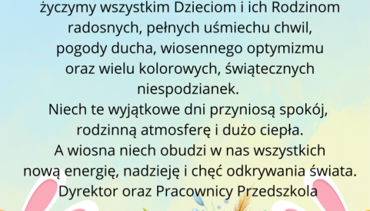 W środę w naszym przedszkolu odbyło się uroczyste śniadanie wielkanocne. Pani Dyrektor złożyły wszystkim przedszkolakom serdeczne świąteczne...