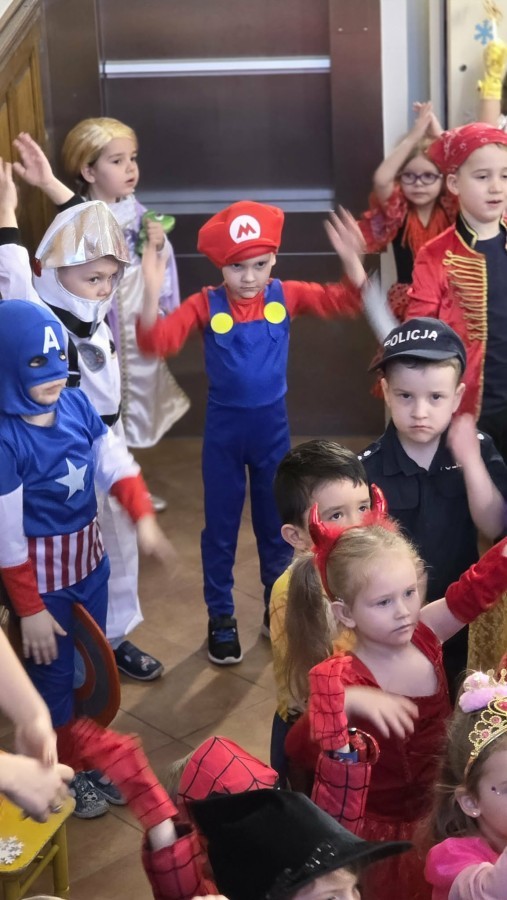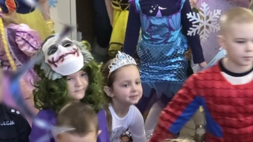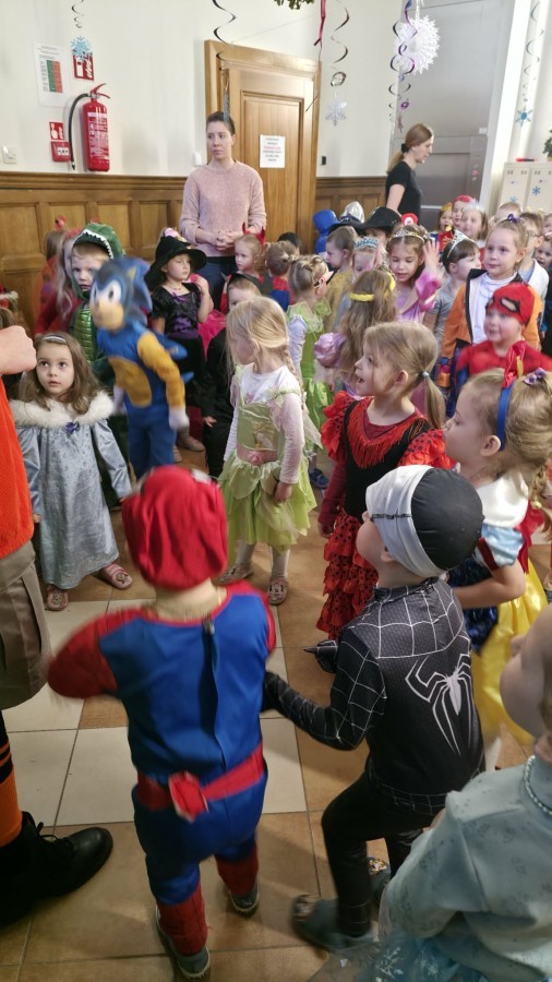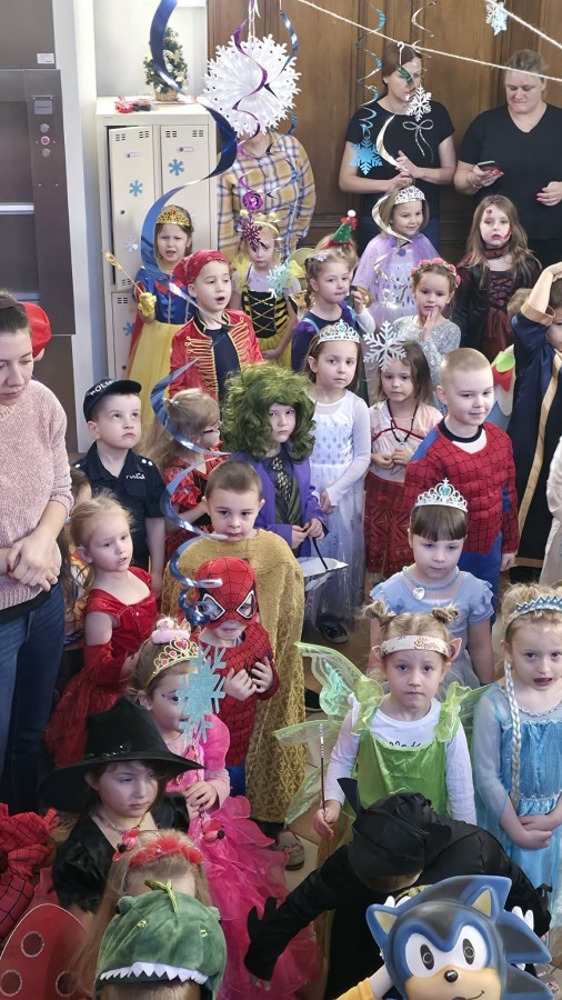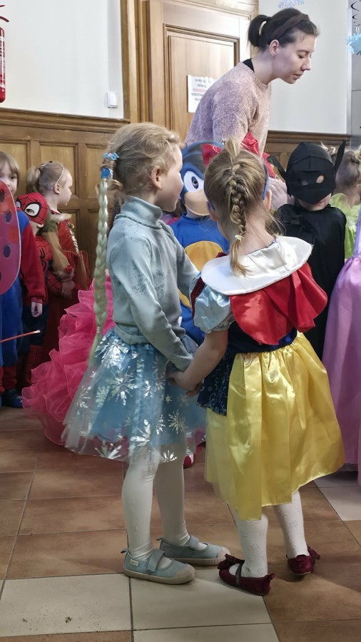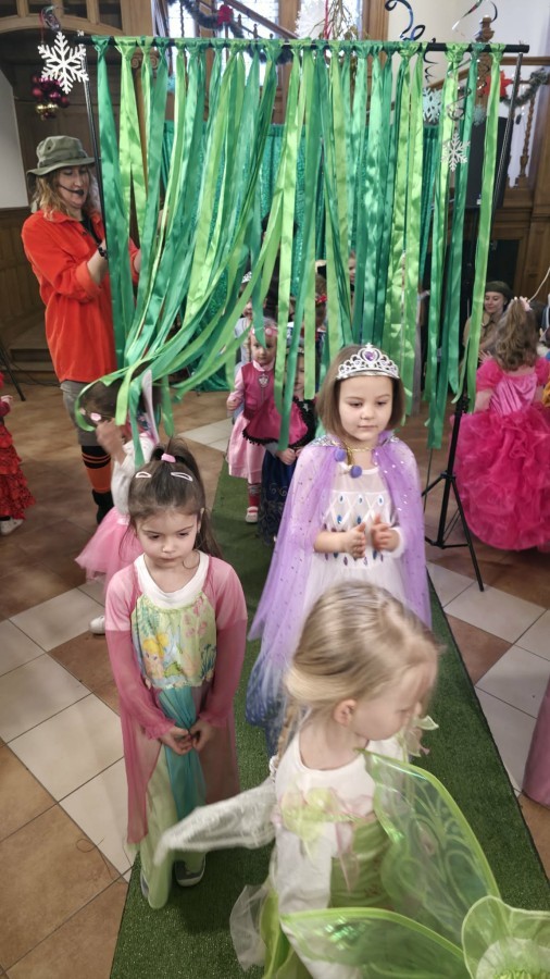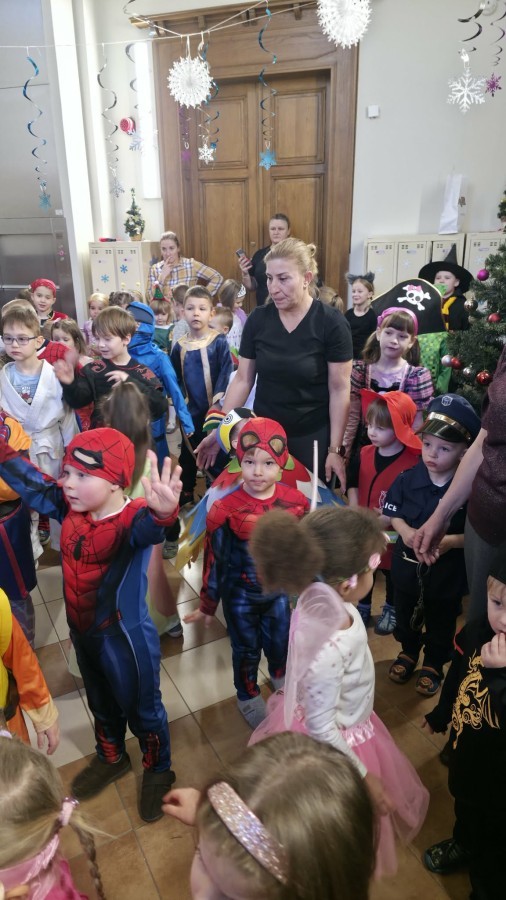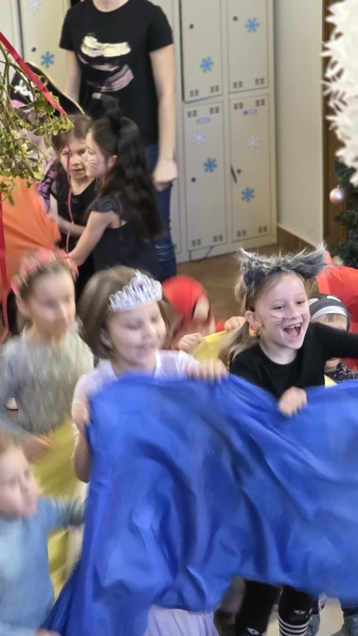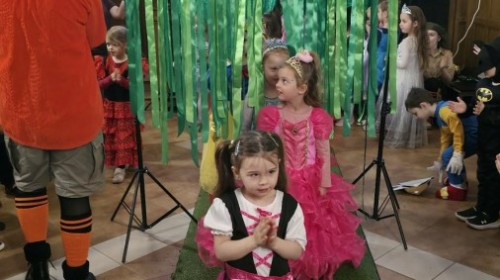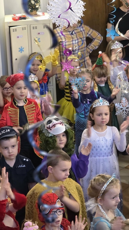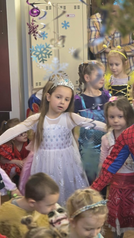 19 stycznia dla wszystkich grup przedszkolnych odbył się bal prowadzony przez panie animatorki, który dostarczył dzieciom wielu radości i niezapomnianych wrażeń. Wesoła muzyka, barwne stroje oraz liczne zabawy taneczne i ruchowe sprawiły, że przedszkolaki z entuzjazmem uczestniczyły we wspólnej zabawie. Panie animatorki z dużym zaangażowaniem prowadziły animacje, dbając o radosną atmosferę oraz integrację dzieci ze wszystkich grup. Bal był wspaniałą okazją do wspólnej zabawy, tańca i uśmiechu.