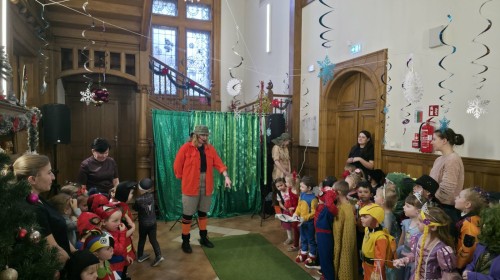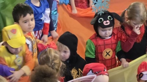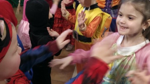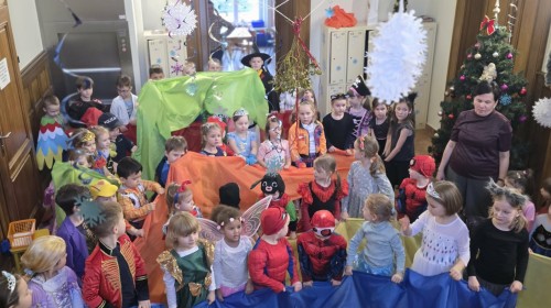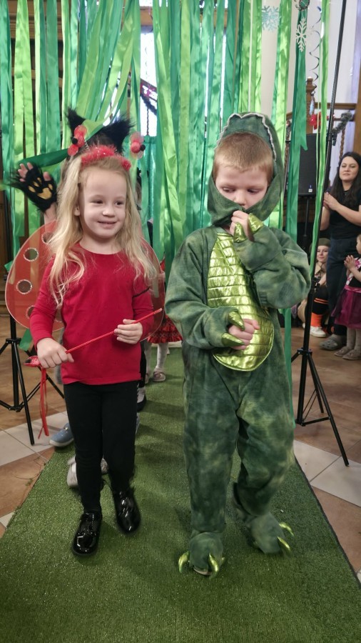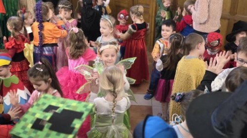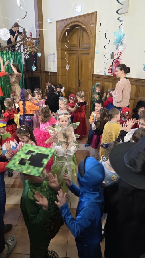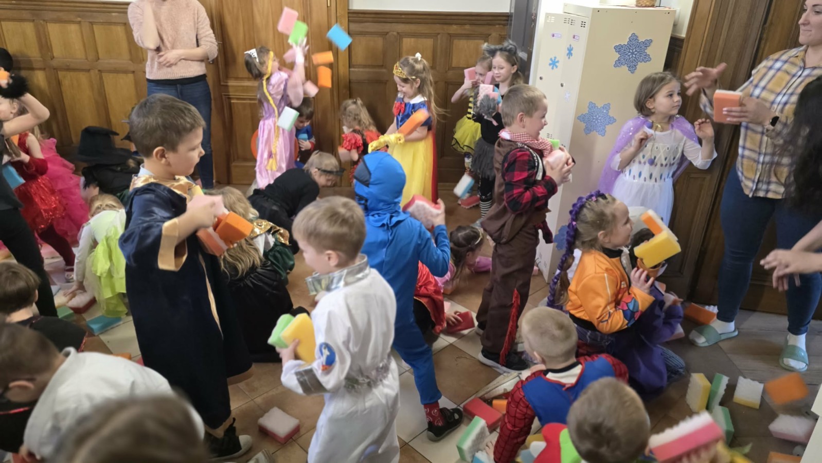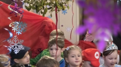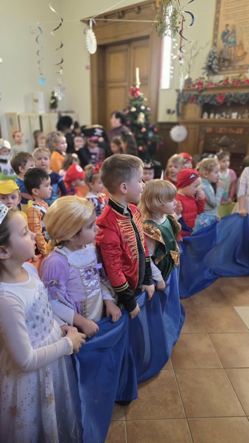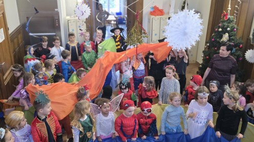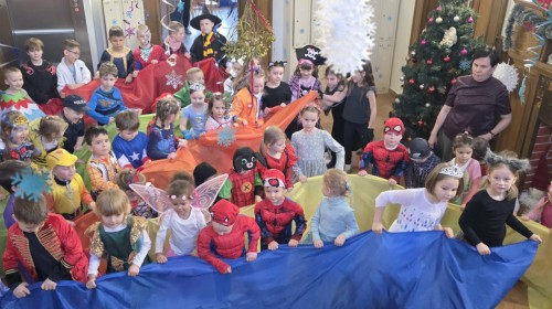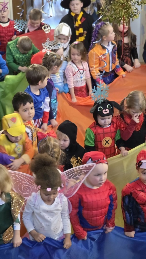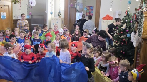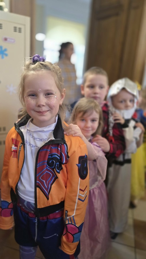 19 stycznia dla wszystkich grup przedszkolnych odbył się bal prowadzony przez panie animatorki, który dostarczył dzieciom wielu radości i niezapomnianych wrażeń. Wesoła muzyka, barwne stroje oraz liczne zabawy taneczne i ruchowe sprawiły, że przedszkolaki z entuzjazmem uczestniczyły we wspólnej zabawie. Panie animatorki z dużym zaangażowaniem prowadziły animacje, dbając o radosną atmosferę oraz integrację dzieci ze wszystkich grup. Bal był wspaniałą okazją do wspólnej zabawy, tańca i uśmiechu.
