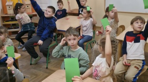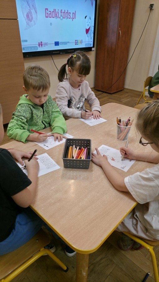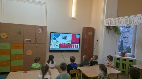 Po obejrzeniu filmu odbyła się rozmowa kierowana, podczas której przedszkolaki chętnie dzieliły się swoimi spostrzeżeniami, a także odgrywały krótkie scenki, utrwalając zdobyte wiadomości. Zajęcia były ważną lekcją, która w przyjazny i przystępny sposób uczy dzieci, jak chronić siebie i jak reagować, gdy czują się niepewnie lub zagrożone.