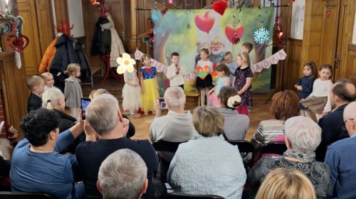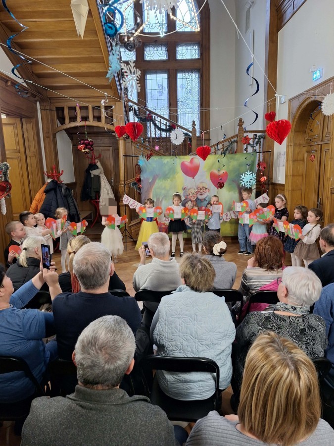 Grupa Młodsze Starszaki przygotowała piękny występ z okazji Dnia Babci i Dziadka. Dzieci zaprezentowały radosne tańce, wzruszające piosenki oraz wierszyki, dziękując swoim babciom i dziadkom za miłość i opiekę. Po części artystycznej wszyscy spotkali się przy słodkim poczęstunku. Uroczystość przebiegła w ciepłej, rodzinnej atmosferze, pełnej uśmiechu i wzruszeń.
