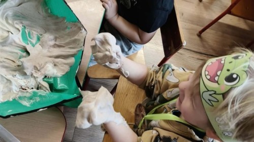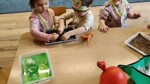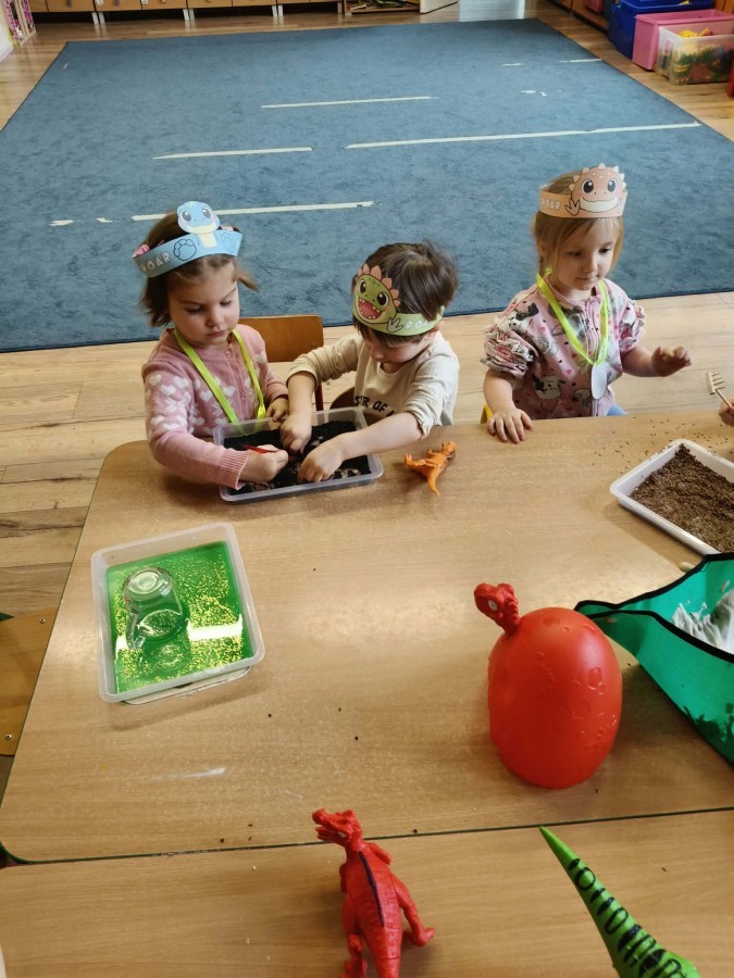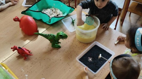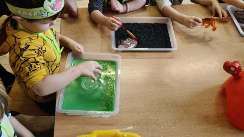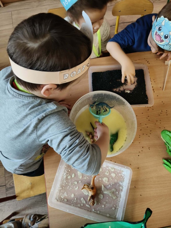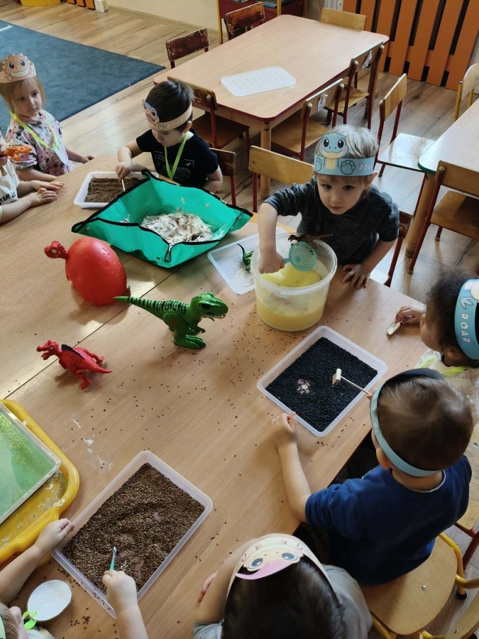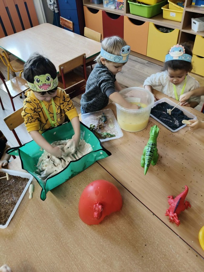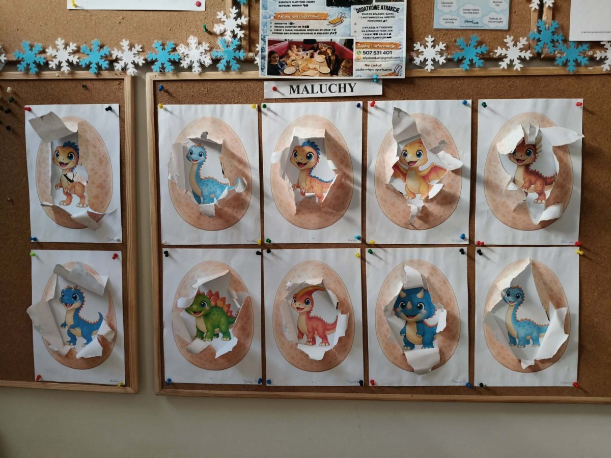 W środę Maluszki obchodziły Dzień Dinozaura. Dzieci brały udział w wielu ciekawych aktywnościach, przedszkolaki poznały historię dinozaurów, dowiedziały się jak wyglądały, czym się żywiły oraz jak wyginęły. Dzieci brały udział w różnych konkurencjach np. musiały wytropić dinozaura krocząc po właściwych śladach i nakarmić głodne dinozaury. Brały także udział w zabawach ruchowo – naśladowczych. Maluszki udały się też na najprawdziwsze wykopaliska, a także wykonały przepiękne prace plastyczne związane z dinozaurami. Dzień Dinozaura upłynął wszystkim w miłej i radosnej atmosferze.