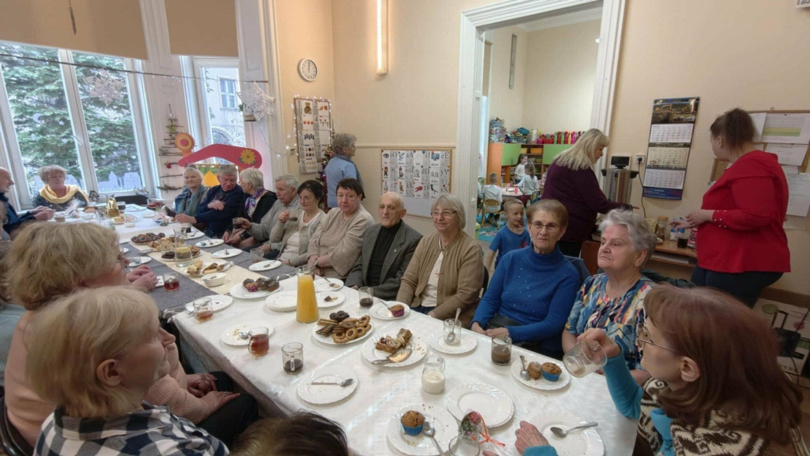 Po występie seniorzy zostali zaproszeni na wspólny poczęstunek, który był okazją do rozmów i miłego spędzenia czasu. Dzieci wręczyły gościom drobne upominki, a seniorzy odwdzięczyli się przedszkolakom słodkościami oraz własnoręcznie wykonanymi robótkami. Było to niezwykle ciepłe i radosne spotkanie międzypokoleniowe, które na długo pozostanie w naszej pamięci. Serdecznie dziękujemy za obecność.
