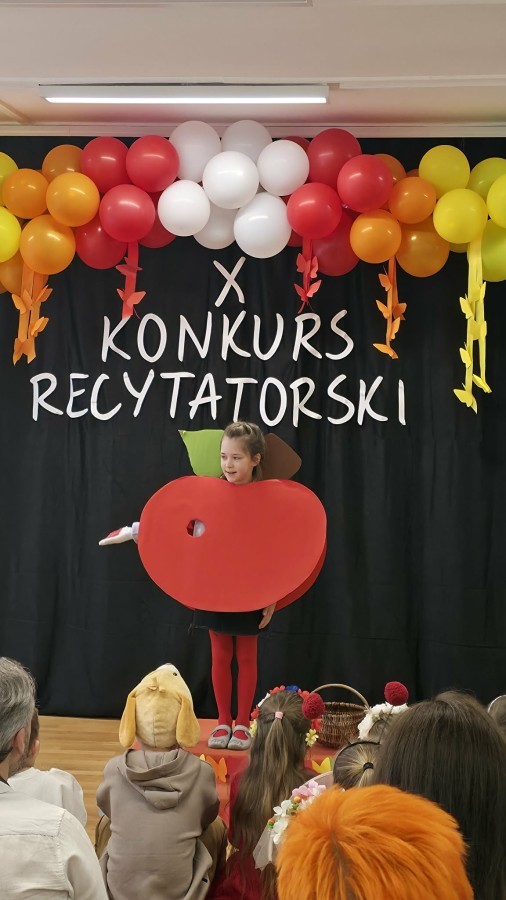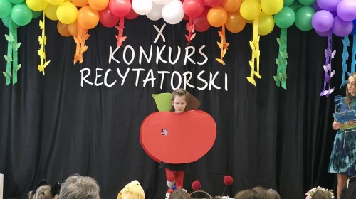 Nasze przedszkole z dumą reprezentowały Zuzia oraz Madzia z grupy Starszaki. Zuzia zaprezentowała wiersz „Entliczek-Pentliczek”, natomiast Madzia – „Tańcowała igła z nitką” Jana Brzechwy.