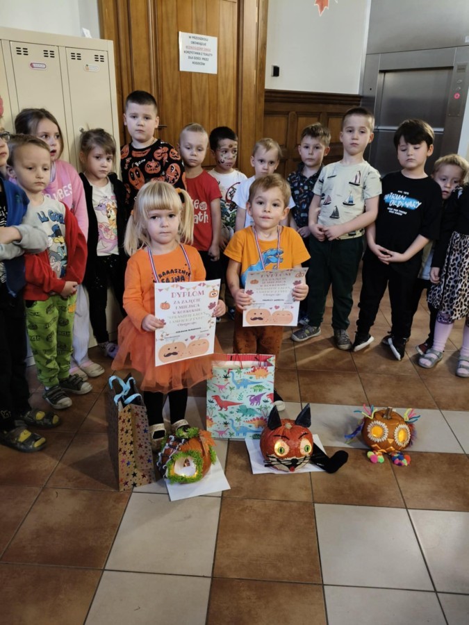 Dzieci wraz z rodzicami wykazały się ogromną kreatywnością i pomysłowością — w przedszkolnym holu można było podziwiać piękne, ciekawe i bardzo pomysłowe dynie: wesołe, straszne, kolorowe, błyszczące, a każda z nich wyjątkowa i niepowtarzalna! ✨🎃