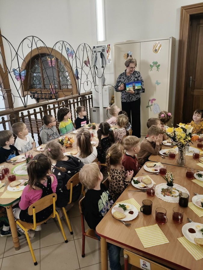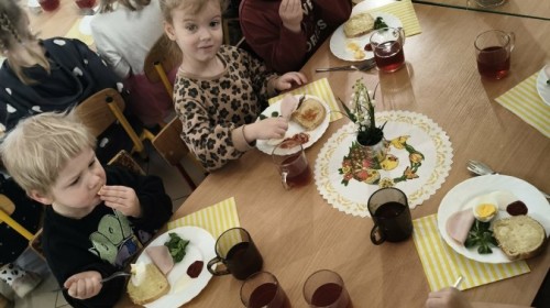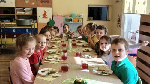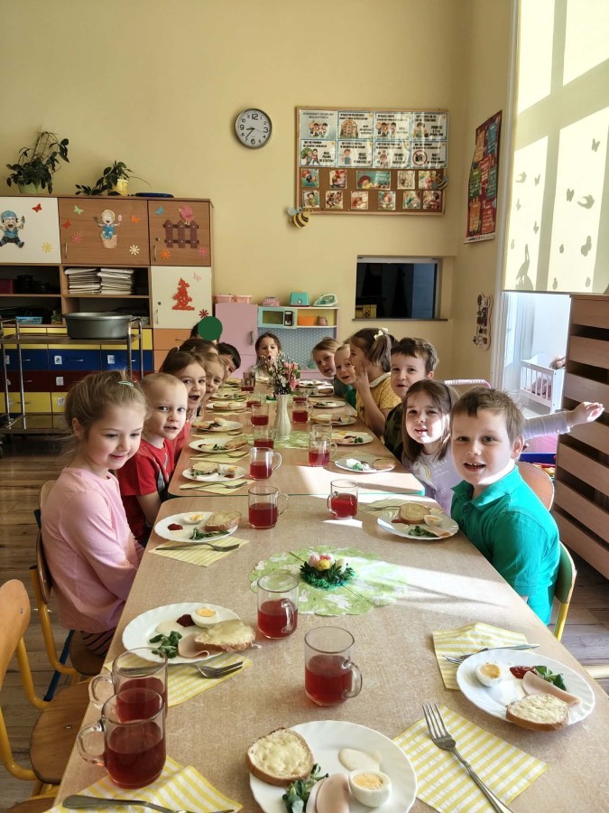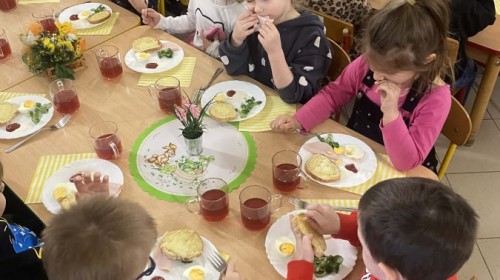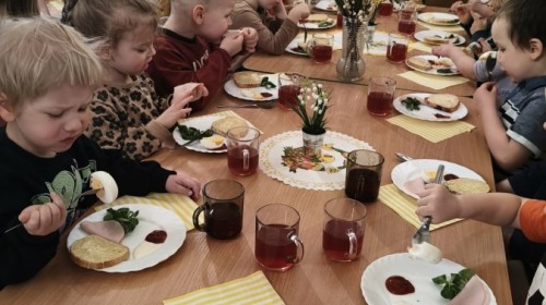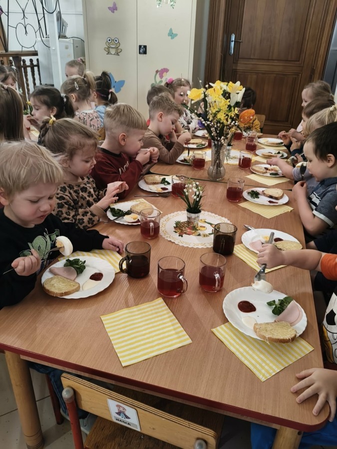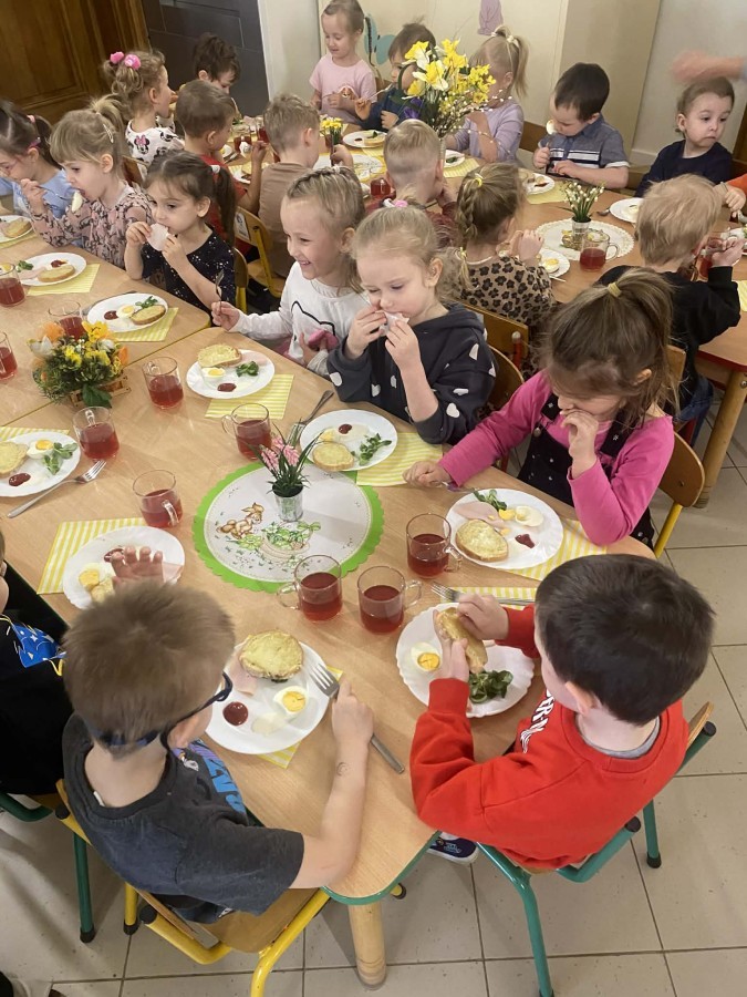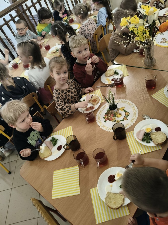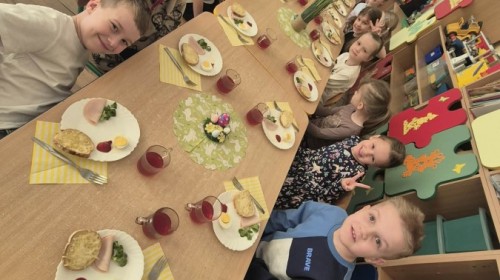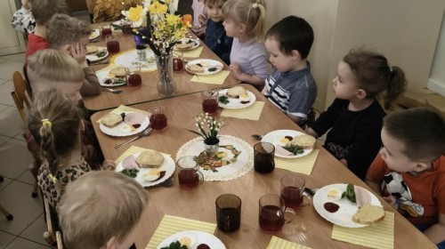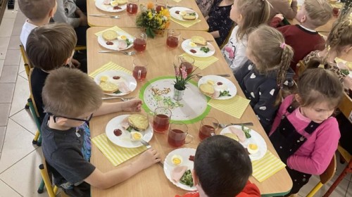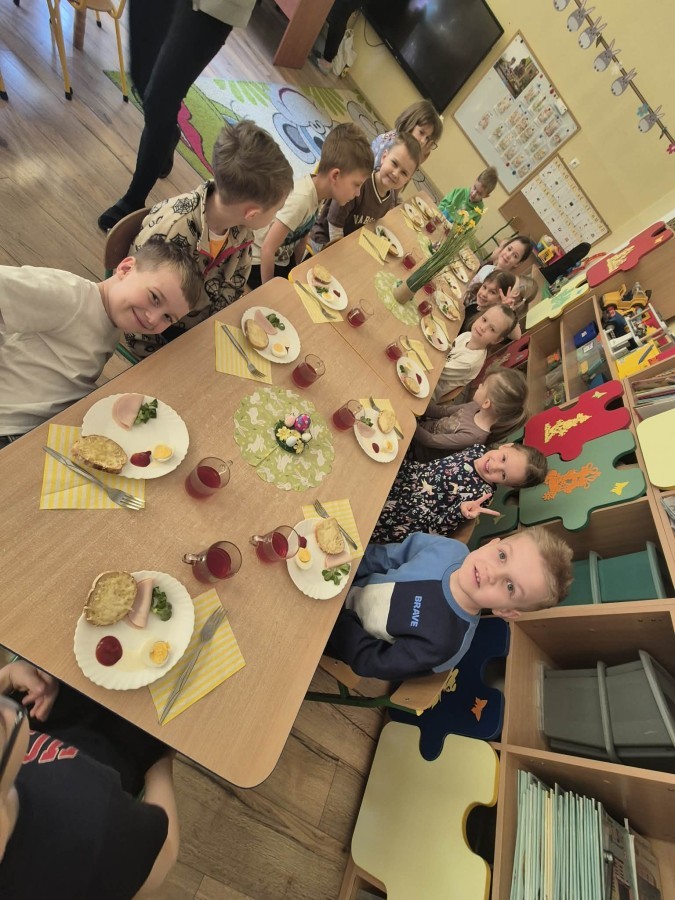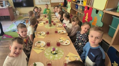 W środę w naszym przedszkolu odbyło się uroczyste śniadanie wielkanocne. Pani Dyrektor złożyły wszystkim przedszkolakom serdeczne świąteczne życzenia. W salach panowała miła, pełna radości i ciepła, świąteczna atmosfera. Na zakończenie dzieci otrzymały słodki upominek, który wywołał wiele uśmiechów.