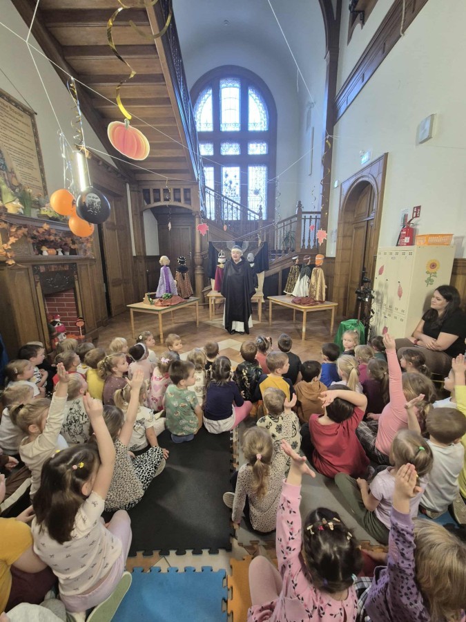 Dnia 4 listopada w naszym przedszkolu odbyło się wyjątkowe przedstawienie teatralne pt. „Królewna Żabka”, które zaprezentowała pani Krystyna Popławska.