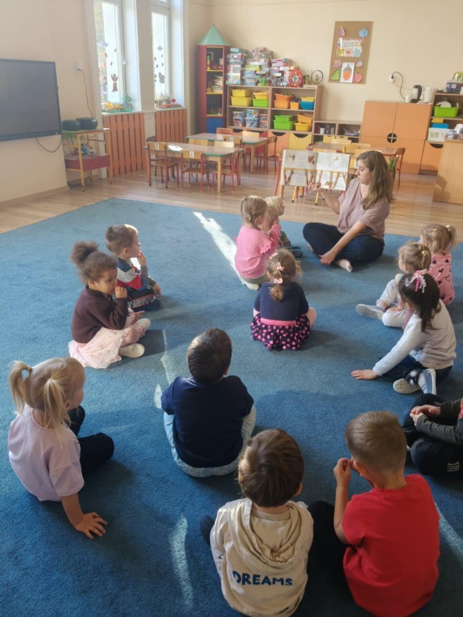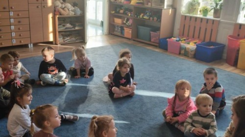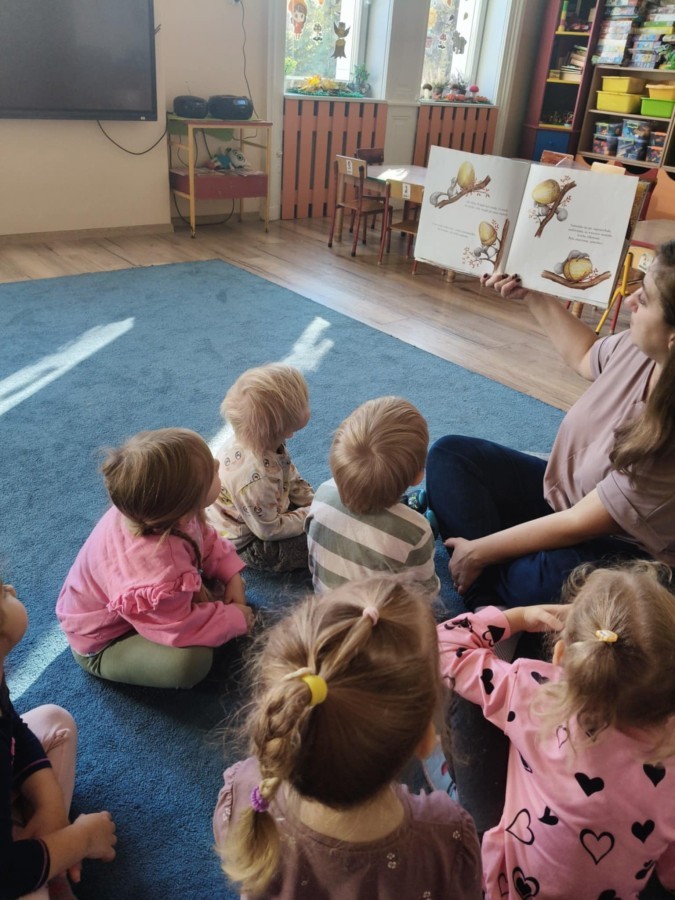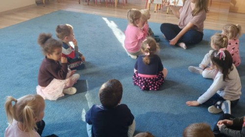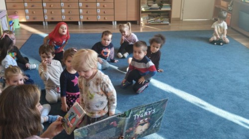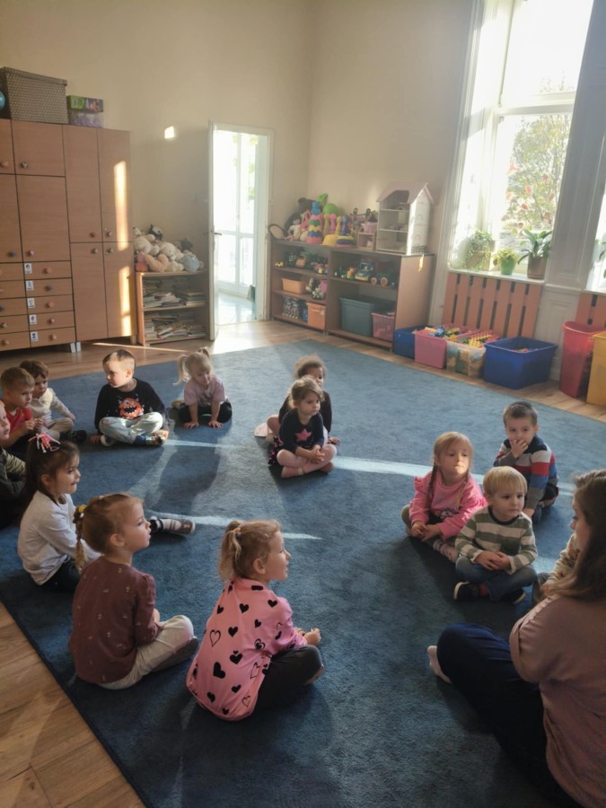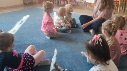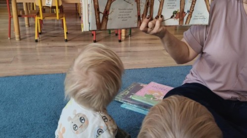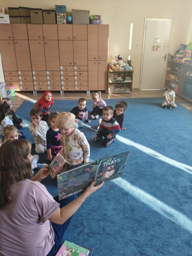 W październiku po raz pierwszy grupę Maluchy odwiedziła Pani Kasia z Dzielnicowej Biblioteki Publicznej. Maluszki z uwagą słuchały czytanych przez nią książeczek. To było ciekawe spotkanie.