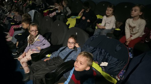 1 grudnia dwie starsze grupy przedszkolne wybrały się na wyjątkowe wyjście do kina Helios– oczywiście pieszo! Spacer był doskonałą okazją do utrwalenia zasad bezpiecznego poruszania się po chodniku i przechodzenia przez jezdnię. Dzieci dzielnie maszerowały, pełne radości i podekscytowania czekającą na nie atrakcją. Celem naszej wyprawy był seans filmu „Zwierzogród II”. Bajka dostarczyła przedszkolakom mnóstwo emocji – były momenty śmiechu, wzruszeń oraz wielkiego zainteresowania losami bohaterów.