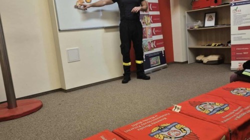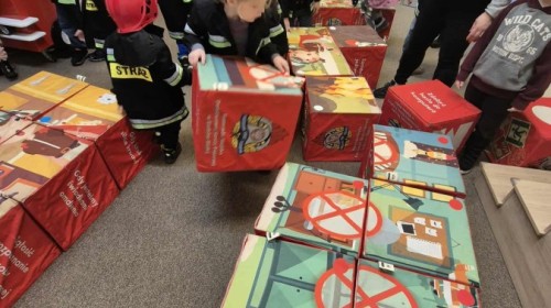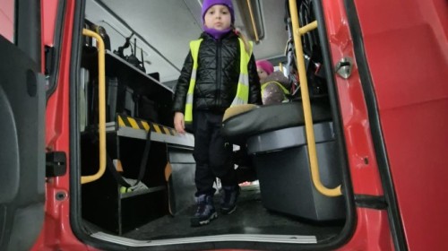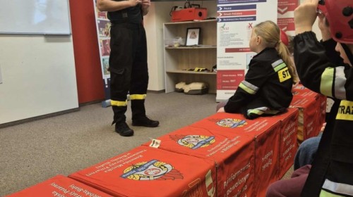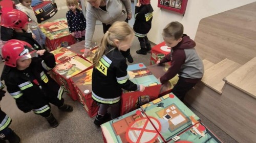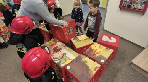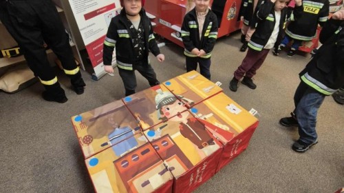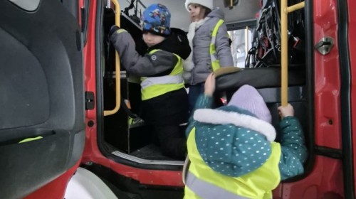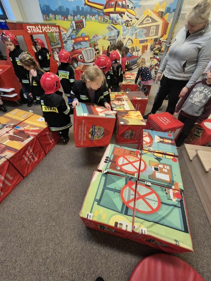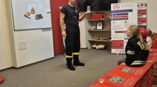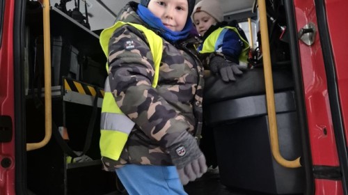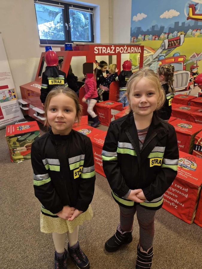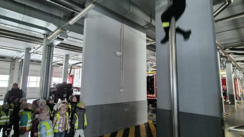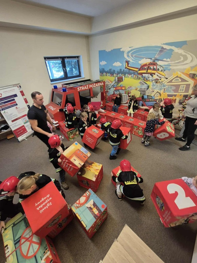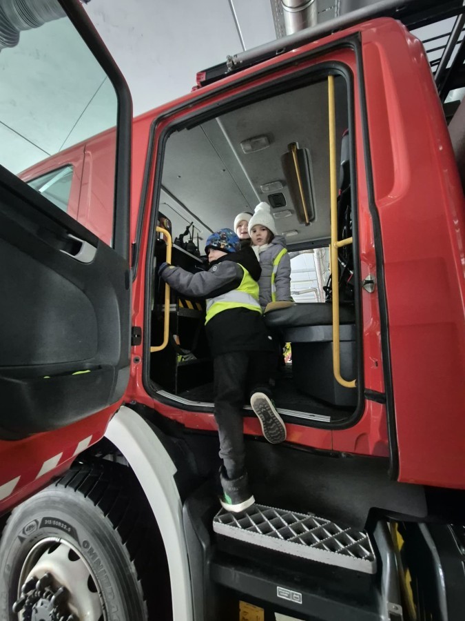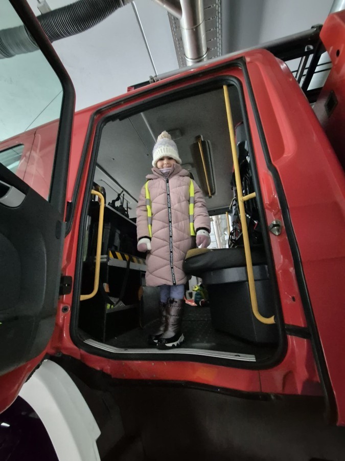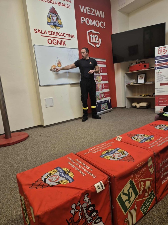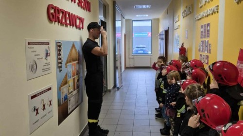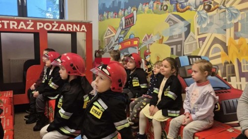 24 listopada grupa Młodsze Starszaki wybrała się do Komendy Miejskiej Państwowej Straży Pożarnej w Bielsku-Białej do sali edukacyjnej "Ognik". Na wstępie dzieci zostały zapoznane z codzienną musztrą strażacką, następnie uczestnicząc w zajęciach dowiedziały się na czym polega praca strażaków zawodowych, jak unikać zagrożeń oraz w jaki sposób powiadamiać służby o wypadku czy pożarze. Przeprowadzono także symulację sytuacji zadymienia, w której dzieci bezpiecznie musiały opuścić zadymione pomieszczenie. Na koniec wszyscy udaliśmy się do garaży, gdzie obejrzeliśmy samochody gaśnicze, ponton, quada oraz inne pojazdy służące strażakom do codziennej pracy. Składamy serdeczne podziękowania dla Pana Szymona za oprowadzenie nas po jednostce oraz przybliżenie w ciekawy sposób tajników swojej pracy.