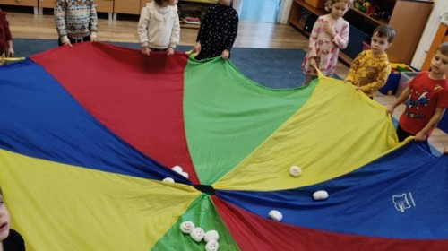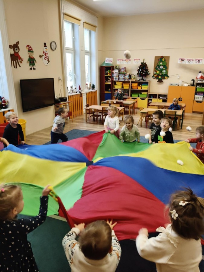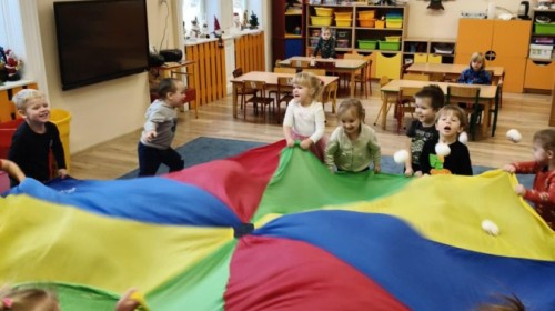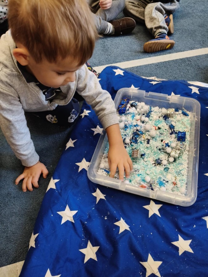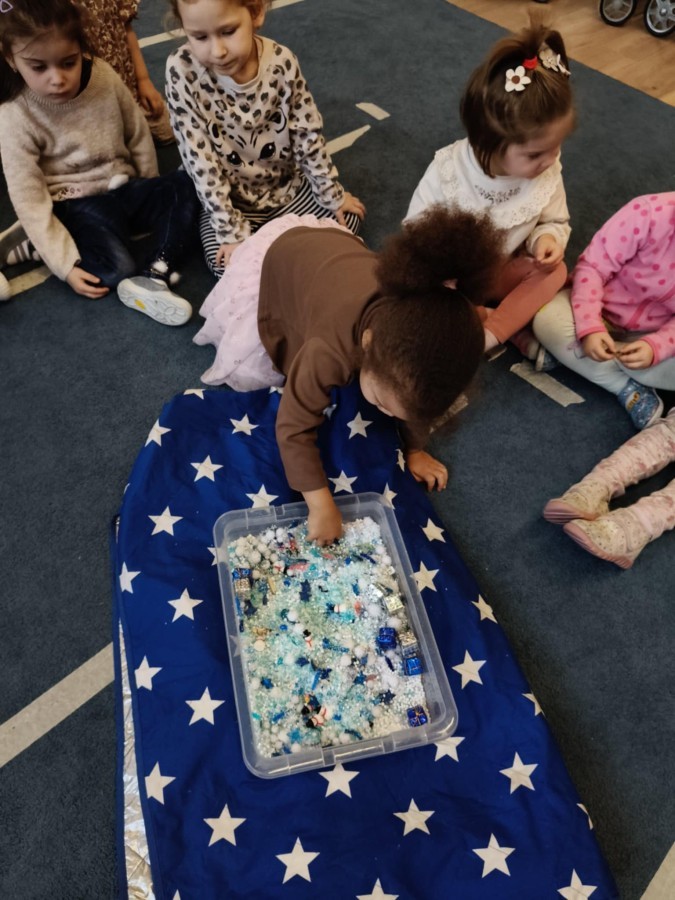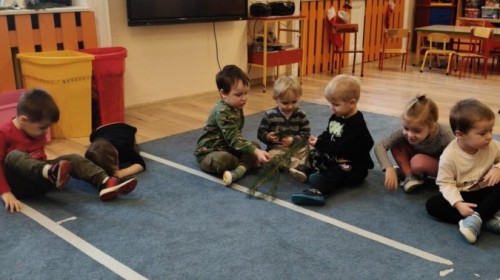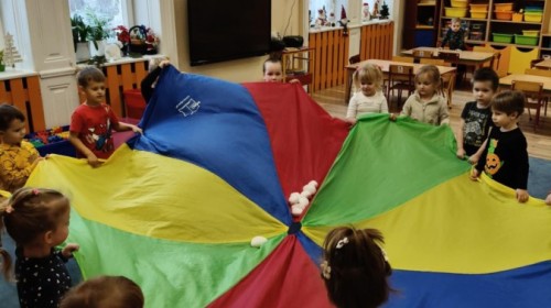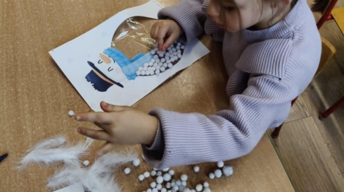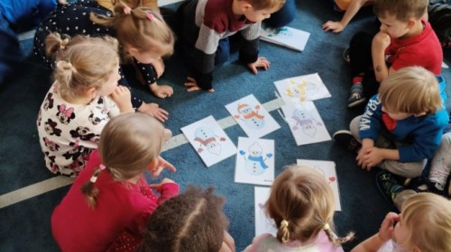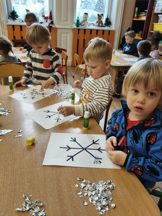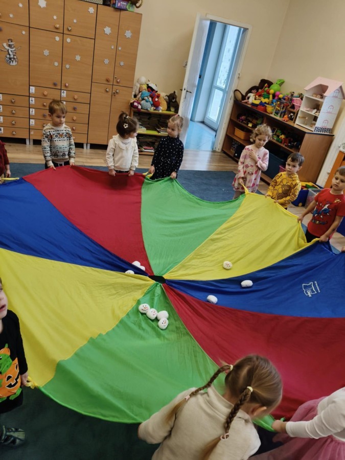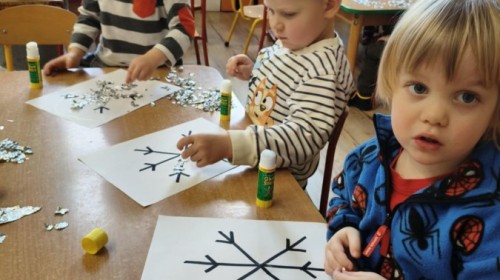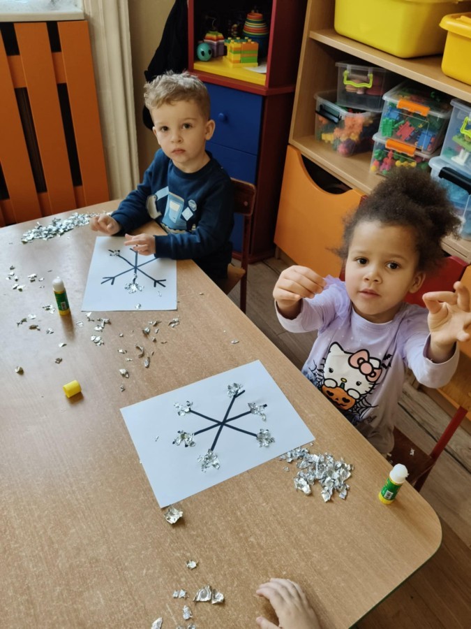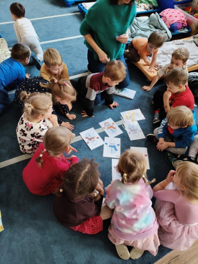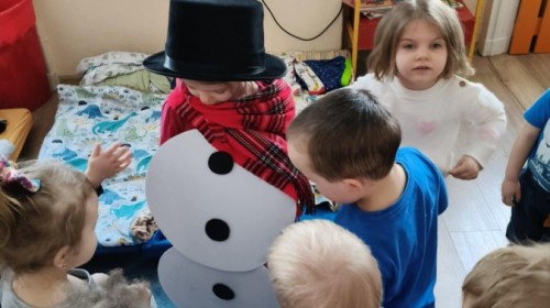 Choć za oknem bywało szaro, w naszej sali zapanowała kraina śniegu. Minione miesiące upływały nam na odkrywaniu uroków zimy. Maluszki brały udział w zabawach rytmicznych, uczyły się piosenek, były również zabawy z chustą animacyjną. Podczas zajęć dydaktycznych poznawaliśmy oznaki zimy, ćwiczyliśmy też ubieranie „na cebulkę”, dopasowując czapki, szaliki i rękawiczki do odpowiednich części ciała. Dzieci tworzyły także różne prace plastyczne rozwijając przy tym motorykę małą. To był czas pełen emocji, nowych doświadczeń i wspólnego uśmiechu. Jesteśmy dumni z naszych dzielnych maluszków, które z taką ciekawością odkrywają świat!