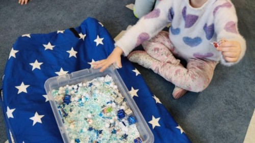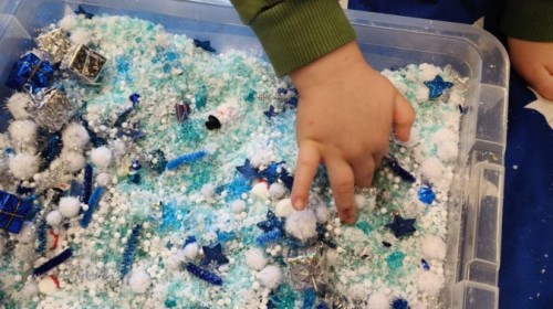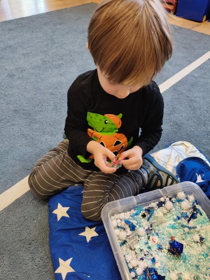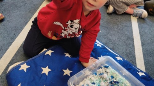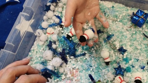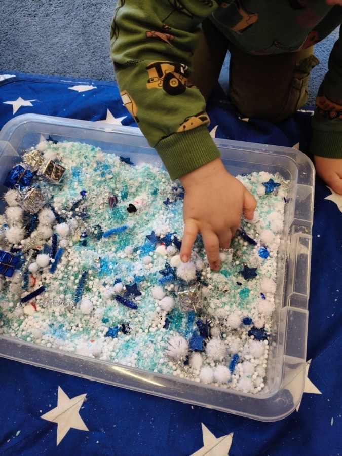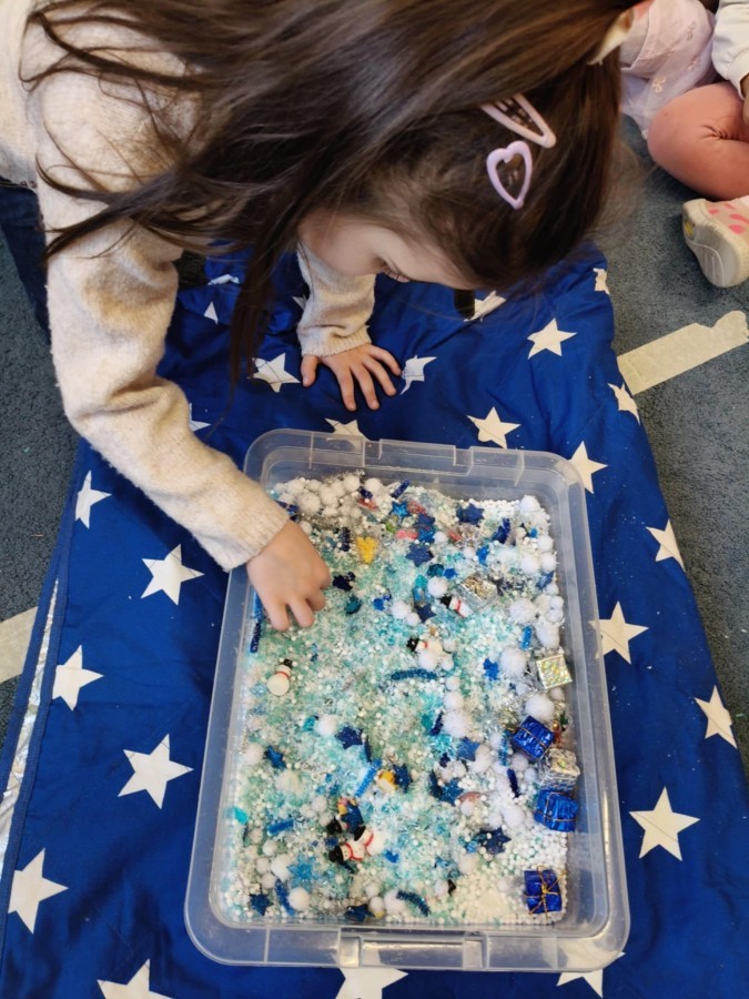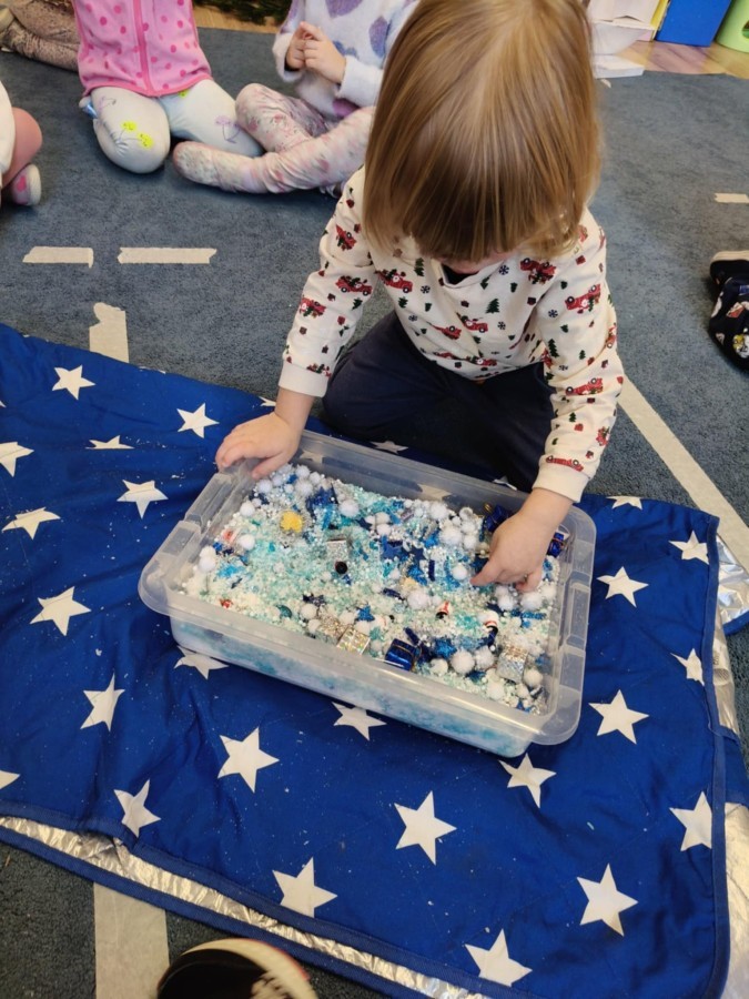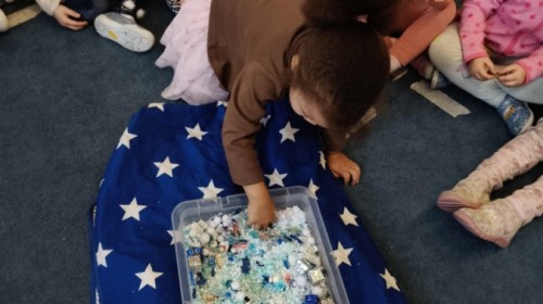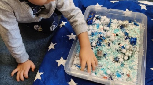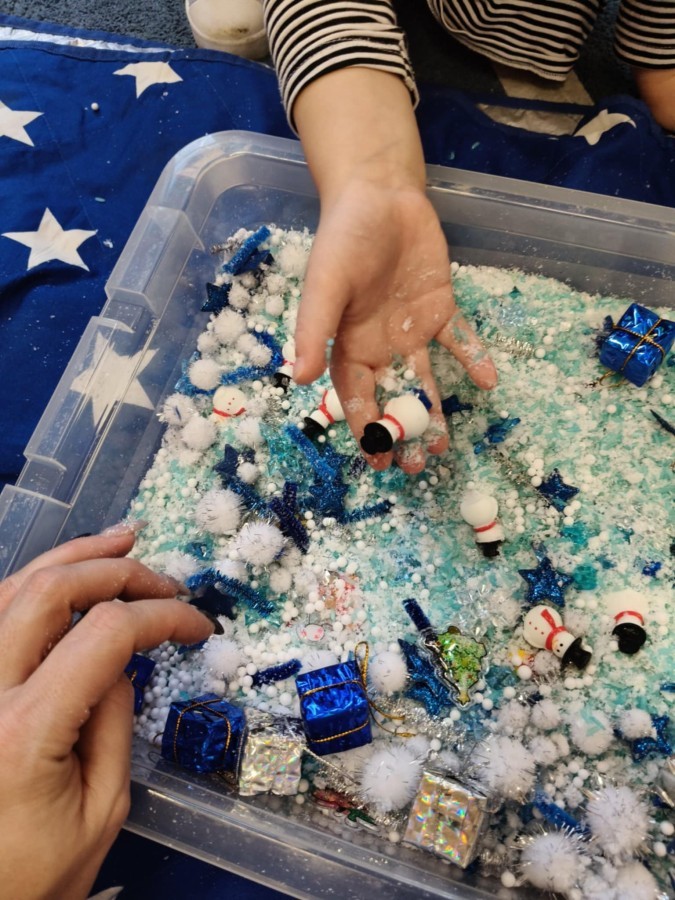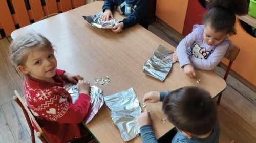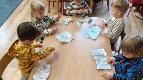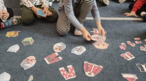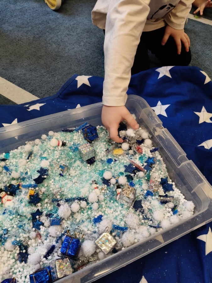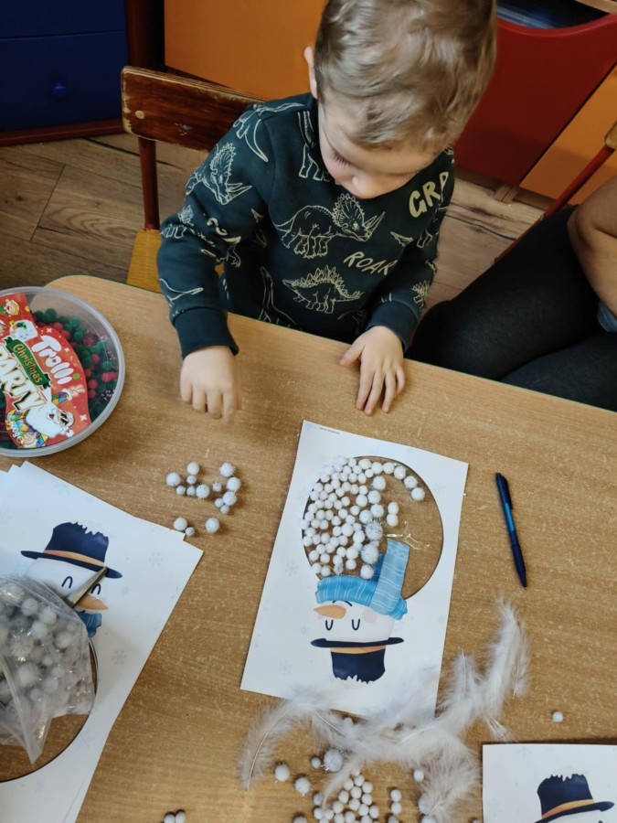 Choć za oknem bywało szaro, w naszej sali zapanowała kraina śniegu. Minione miesiące upływały nam na odkrywaniu uroków zimy. Maluszki brały udział w zabawach rytmicznych, uczyły się piosenek, były również zabawy z chustą animacyjną. Podczas zajęć dydaktycznych poznawaliśmy oznaki zimy, ćwiczyliśmy też ubieranie „na cebulkę”, dopasowując czapki, szaliki i rękawiczki do odpowiednich części ciała. Dzieci tworzyły także różne prace plastyczne rozwijając przy tym motorykę małą. To był czas pełen emocji, nowych doświadczeń i wspólnego uśmiechu. Jesteśmy dumni z naszych dzielnych maluszków, które z taką ciekawością odkrywają świat!
