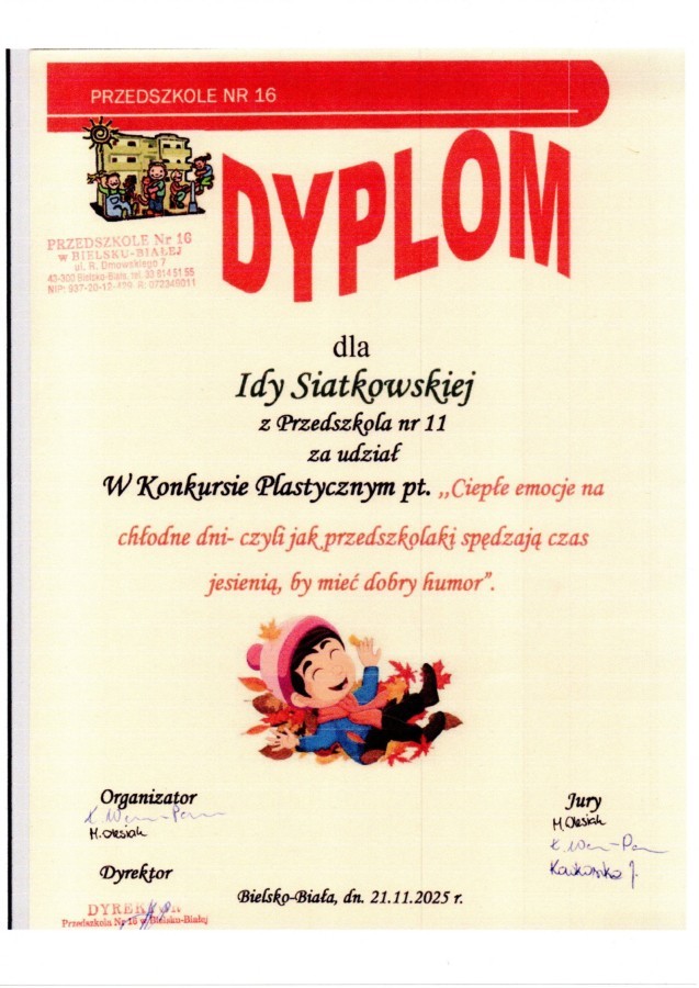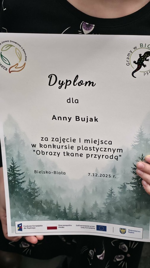 Z ogromną radością informujemy, że Ania Bujak została laureatką I miejsca w konkursie plastycznym organizowanym przez Centrum Edukacji Ekologicznej „Ekosynteza”. ![]()